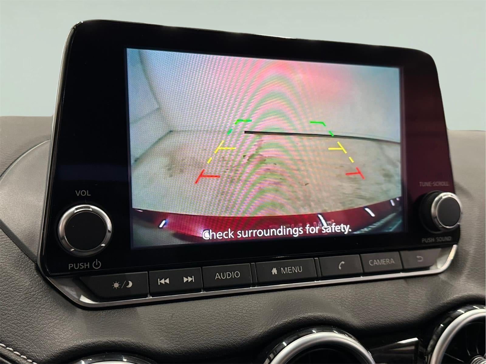 - The vehicle is equipped with a camera that displays an image of the area behind the vehicle on an interior display.