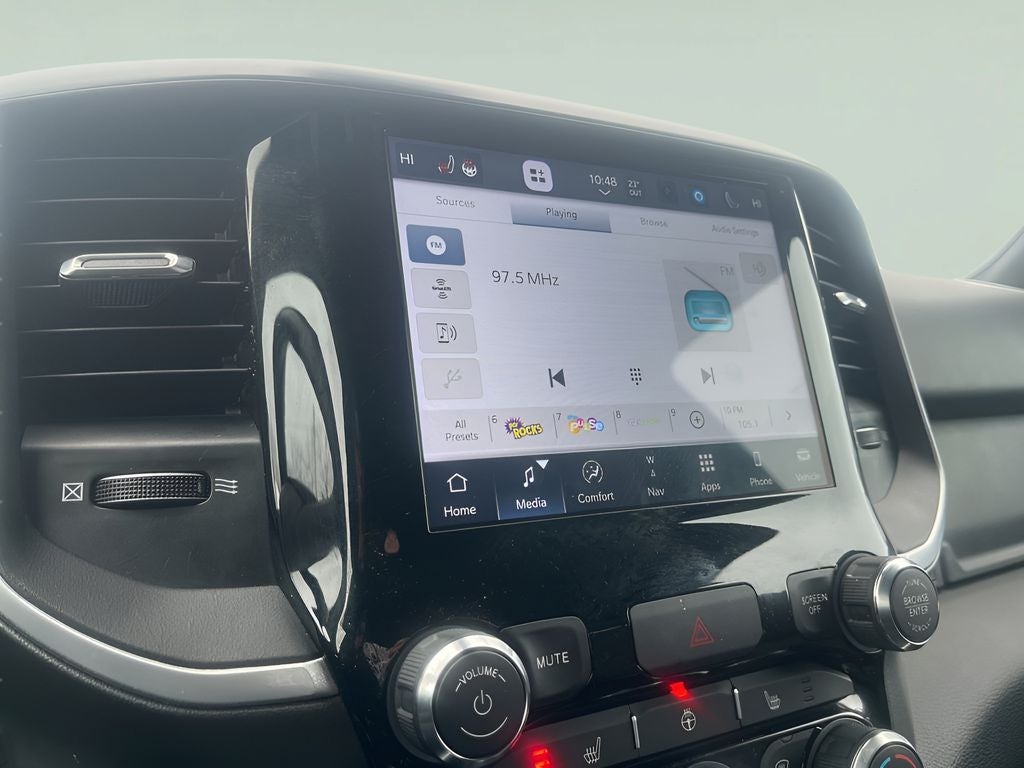 Balance Of Factory Warranty Remaining!, 115V Auxiliary Power Outlet, 115V Auxiliary Rear Power Outlet, 2nd Row In Floor Storage Bins, 400W Inverter, 4G LTE Wi-Fi Hot Spot, 8.4 Touchscreen Display, Air Conditioning ATC w/Dual Zone Control, Apple CarPlay, Auto-Dimming Exterior Driver Mirror, Auto-Dimming Rear-View Mirror, Big Horn Badge, Big Horn Level 2 Equipment Group, Black Exterior Mirrors, Black Premium Power Mirrors, Bluetooth® Handsfree Phone & Audio, Class IV Receiver Hitch, Cluster 7.0 TFT Color Display, Connectivity - US/Canada, Convex Wide-Angle Mirror Insert, Exterior Mirrors Courtesy Lamps, Exterior Mirrors w/Heating Element, Exterior Mirrors w/Supplemental Signals, For Details, Visit DriveUconnect.com, Global Telematics Box Module (TBM), Glove Box Lamp, Google Android Auto, GPS Antenna Input, GPS Navigation, Heated Front Seats, Heated Steering Wheel, Integrated Center Stack Radio, Media Hub w/2 Charge Only USBs, ParkSense Front/Rear Park Assist w/Stop, ParkView Rear Back-Up Camera, Power 2-Way Driver Lumbar Adjust, Power 8-Way Driver Seat, Power Adjustable Pedals, Power-Folding Mirrors, Quick Order Package 27Z Big Horn, Radio: Uconnect 5 W w/8.4 Display, Rear Dome w/On/Off Switch Lamp, Rear Power Sliding Window, Rear Window Defroster, Remote Start System, Security Alarm, SiriusXM Radio Service, SiriusXM Satellite Radio, Sun Visors w/Illuminated Vanity Mirrors, Universal Garage Door Opener, USB Host Flip. 2022 Ram 1500 Big Horn/Lone Star Delmonico Red Pearlcoat