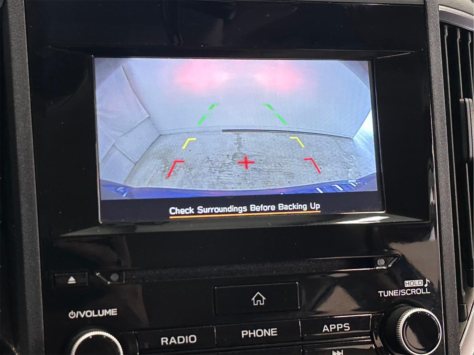 - The vehicle is equipped with a camera that displays an image of the area behind the vehicle on an interior display.
