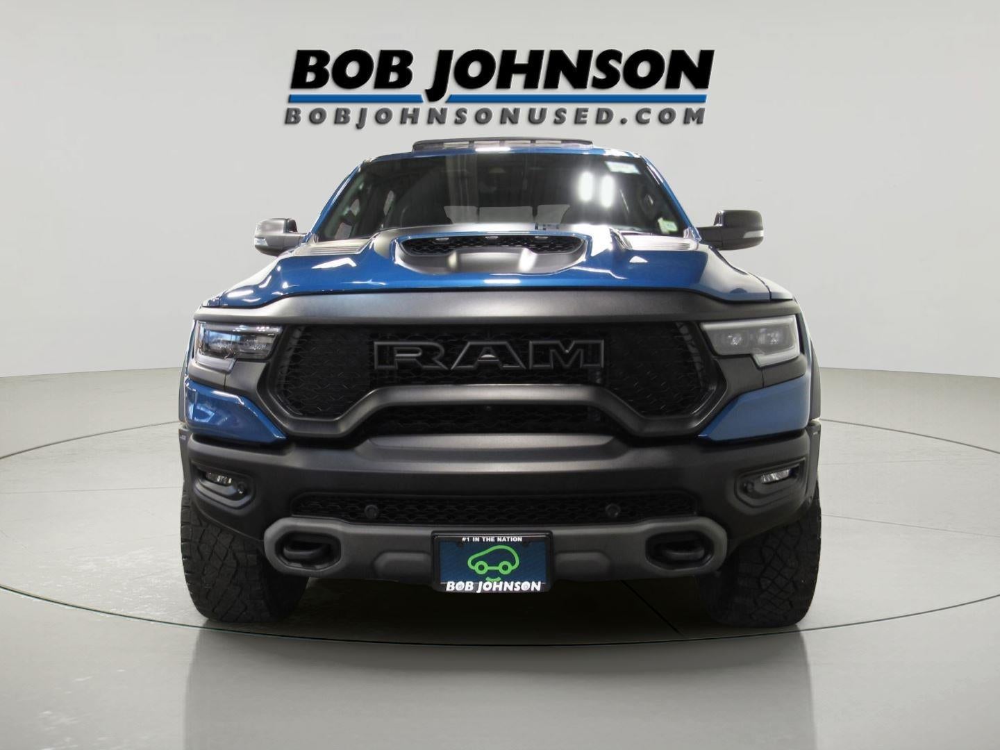 This 2024 Ram 1500 TRX, has a Night Edge Blue exterior and an Black interior color. 31,325 miles. Stock Number T268781A. You can connect with us by calling (585) 663-4040. 6.2L Supercharged V8 Final Edition ($12,850 value)MOPAR 4 Adjustable Cargo Tie-Down HooksPatina Accent StitchingSpecial Edition Console BadgeTrailer Light CheckLane Keep AssistPedestrian Emergency BrakingMOPAR Deployable Bed StepSpecial Edition Hood BadgeTRX Special Edition Side GraphicsMOPAR TRX Hood GraphicsAdaptive Cruise Control with Stop and GoLeather/carbon Flat-Bottom Steering WheelTrailer Reverse Steering ControlTrailer Tire Pressure Monitoring SystemMOPAR Spray in BedlinerReal Carbon Fiber Interior AccentsQuick Order Package 29Y TRXTRX Level 2 Equipment Group ($10,995 value)Ventilated Rear SeatsVentilated Front SeatsRear 60/40 Folding Split Recline SeatDriver/passenger Wrapped Assist HandlesLuxury Front Door Trim PanelRear Underseat Compartment StorageFull Length Premium Upgraded Floor ConsoleRear Window DefrosterSun Visors with Illuminated Vanity MirrorsDigital Rearview Mirror2-Door Passive Entry, Front Door LocksPremium Wrapped Instrument Panel BezelRain Sensitive Windshield WipersRemote Tailgate ReleaseHeated Second Row SeatsPower 8-Way Driver and Passenger SeatsFront Door Accent LightingRear Door Accent LightingIP LED Ambient Light PipeHead Up DisplayExterior Mirrors with MemoryDriver Seat MemoryRadio/driver Seat/mirrors/pedals MemoryLED CHMSL LampPick-Up Box LightingAccent Color Door HandlesHeated Steering WheelHarman/kardon 19 Speaker Premium SoundWireless Charging PadLeather/suede Flat-Bottom Steering WheelSurround View Camera SystemPower Adjustable Pedals with MemoryBlind Spot and Cross Path DetectionMOPAR Bright Pedal KitUniversal Garage Door OpenerParkSense Front/rear Park Assist with StopTrailer Brake ControlLeather Trimmed Bucket Seats Comfort Ventilated seats offer warm weather comfort by cooling areas of the occupant's body not exposed to the air conditioning system.Convenience The vehicle can be remotely started from the keyfob and from a smart device such as a phone and a subscription is required to maintain access to the smart device remote start function.Safety and Security The vehicle is equipped with a system that senses, and then prepares, the vehicle and/or occupants, for an impending forward collision. A blind spot detection system will alert the driver when another vehicle is within the warning zone.Technology and Telematics The vehicle is equipped with a built-in voice activated navigation system. ENGINE: 6.2L SUPERCHARGED HEMI V8 SRT, TRANSMISSION: 8-SPEED AUTOMATIC (8HP95), QUICK ORDER PACKAGE 29Y TRX, WHEELS: 18" X 9" PAINT/POLISH ALUMINUM, LOWER TWO TONE PAINT, NIGHT EDGE BLUE, DIAMOND BLACK CRYSTAL PEARLCOAT, BLACK, LEATHER TRIMMED BUCKET SEATS, TRX LEVEL 2 EQUIPMENT GROUP, 6.2L SUPERCHARGED V8 FINAL EDITION, TRAILER REVERSE STEERING CONTROL, DUAL-PANE PANORAMIC SUNROOF, MOPAR TRX HOOD GRAPHICS, FRONT LICENSE PLATE BRACKET, MOPAR OFF-ROAD STYLE RUNNING BOARDS, SURROUND VIEW CAMERA SYSTEM, BLIND SPOT & CROSS PATH DETECTION, PARKSENSE FRONT/REAR PARK ASSIST W/STOP Come on in to Bob Johnson Chevrolet Rochester today at 1271 W RIDGE RD ROCHESTER NY 14615 or call (585) 663-4040 to schedule a test drive!