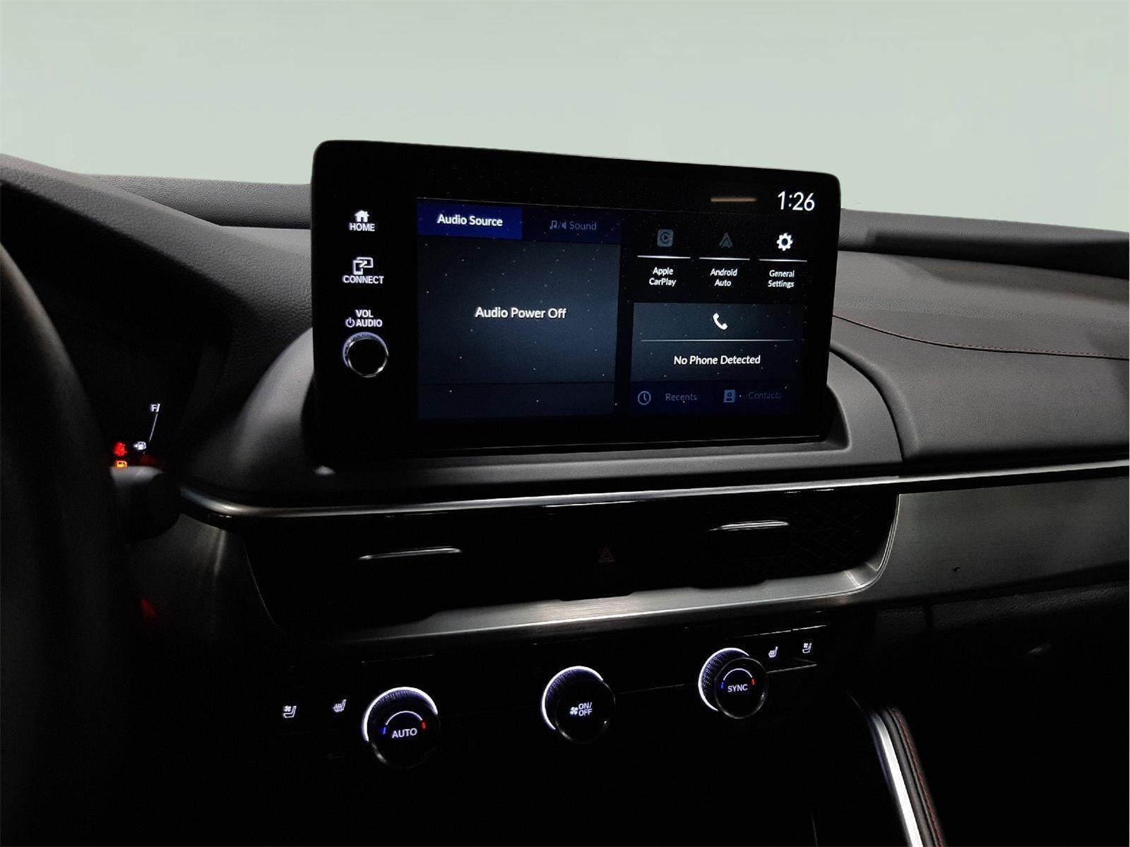 - Radio: AM/FM Acura Premium Audio System -inc: 8 speakers, 9" color touchscreen, Wi-Fi hotspot capability, AcuraLink, AcuraLink connected services, wireless Apple CarPlay and Android Auto compatibility, Bluetooth® HandsFreeLink, Bluetooth® streaming audio, 3.0-amp USB-C smartphone/audio interface w/USB-C charging ports, wireless phone charger and Speed-Sensitive Volume Compensation (SVC)