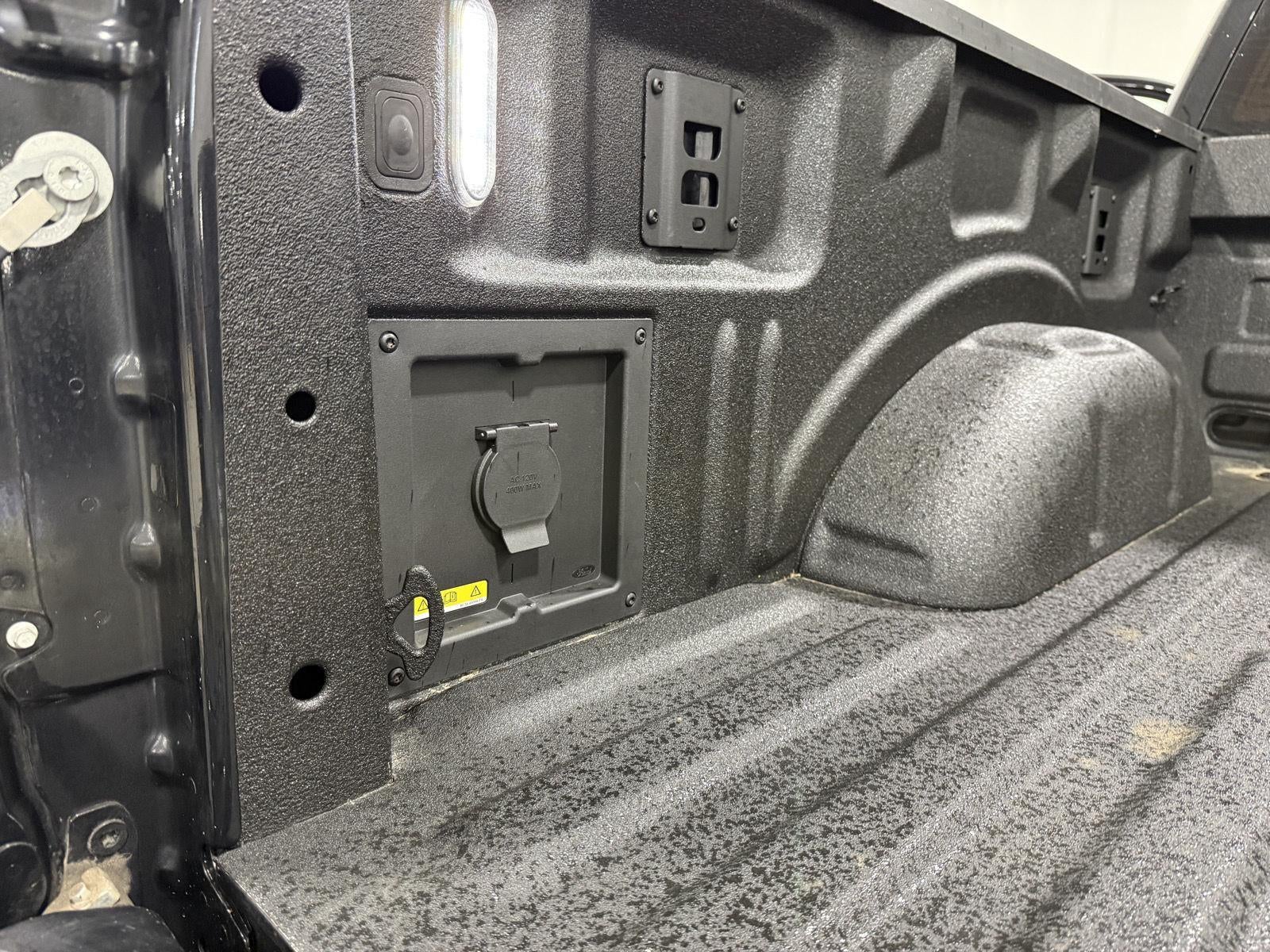 - Includes LED box lighting w/ zone lighting, four BoxLink premium locking cleats, power tailgate, tailgate step, tailgate work surface, and extended chrome 6 in. running boards.